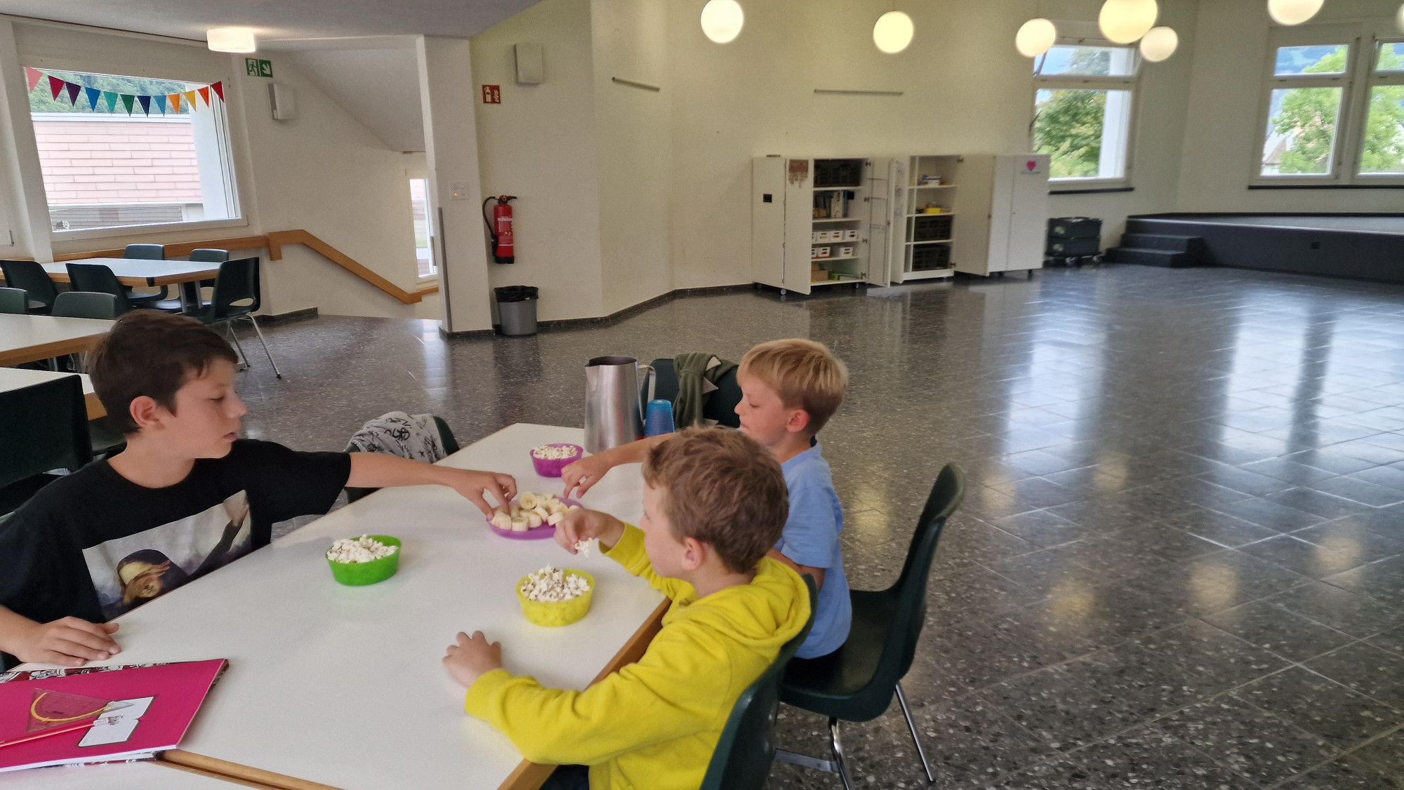 Die schulergänzende Betreuung ist mit einem super Start ins neue Schuljahr gestartet. Besonders beliebt ist das feine und abwechslungsreiche Mittagessen, das täglich für Genuss und gute Laune sorgt. Schön ist auch, dass das gemeinsame Essen von Oberstufenschüler/innen mit den Primarschüler/innen so gut funktioniert. Manchmal entstehen sogar tolle gemeinsame Projekte oder Spielideen.