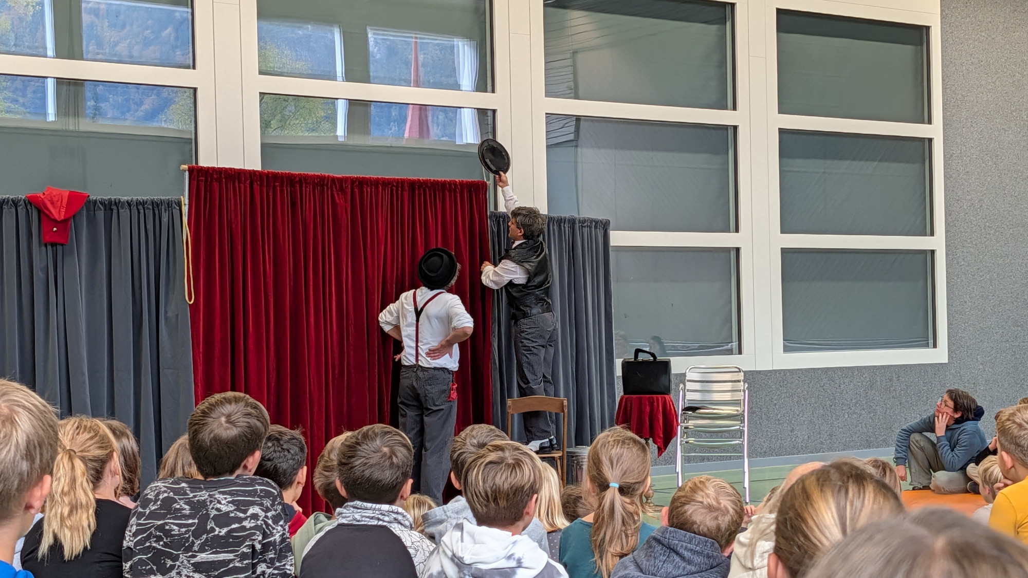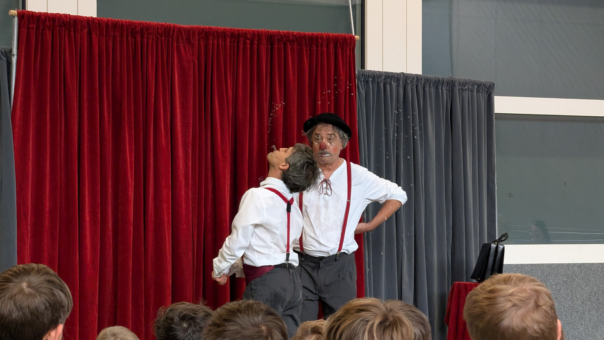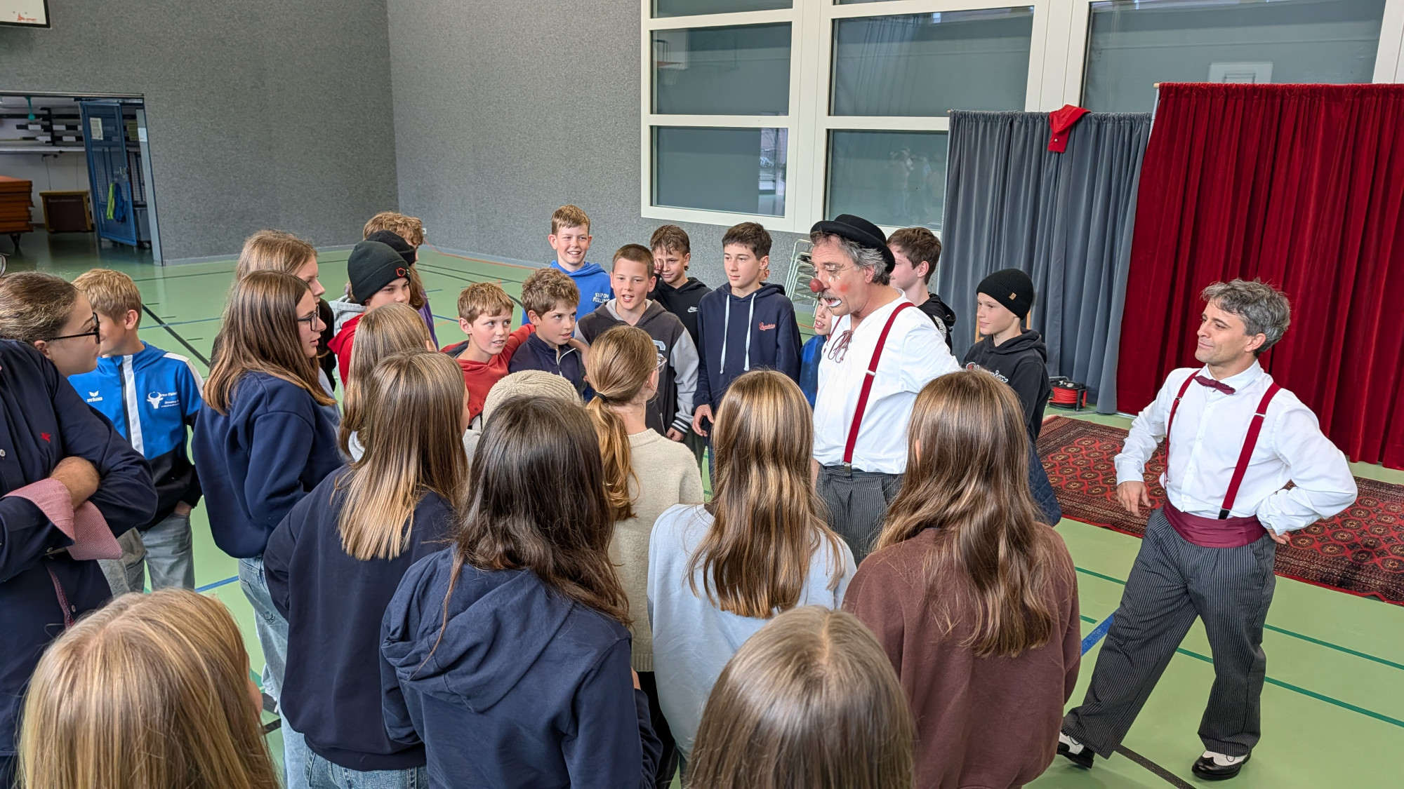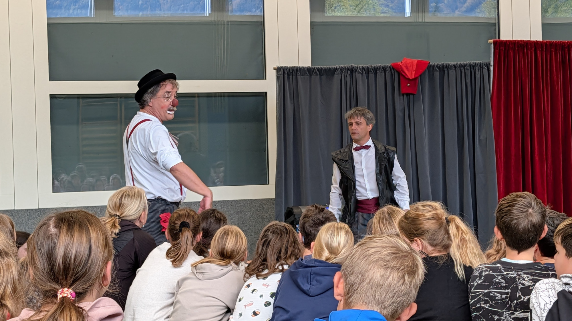 Als Dankeschön wurden heute alle Kinder zur Clownshow von Tommy und Pepe eingeladen. Gian, der uns während der Zirkuswoche begleitet hat, ist der Sohn von Pepe, einem der beiden Clowns. Besonders schön: Pepe war bereits vor 30 Jahren (!) an unserer Schule aktiv, als wir die erste Zirkuswoche unter dem klingenden Namen „Zirkus Fantastico“ durchgeführt haben. Die einen oder anderen Mütter und Väter können sich bestimmt noch daran erinnern. 😊