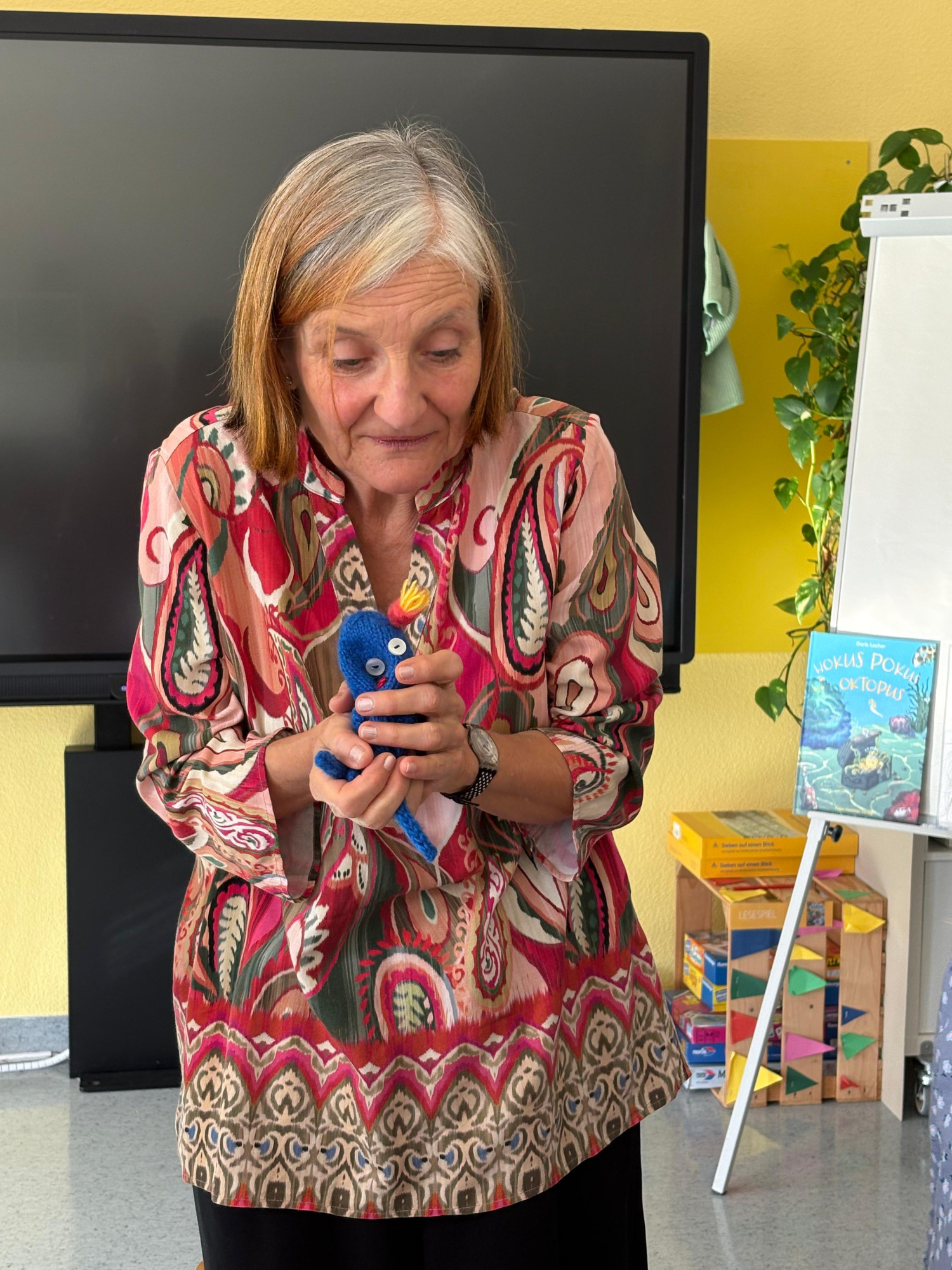 Zu Beginn zeigte sie uns, wie sie ihre neueste Geschichte vorbereitet hat. Das Buch heisst Hokus Pokus Oktopus.